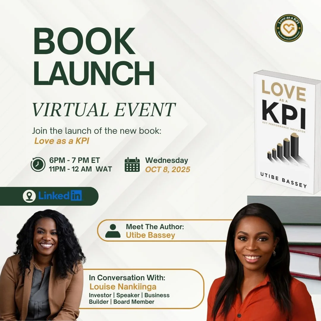 Join author Utibe Bassey and Louise Nankinga, Investor, Speaker, Business Builder, and Board Member, for a live conversation as they explore the message behind Love as a KPI.